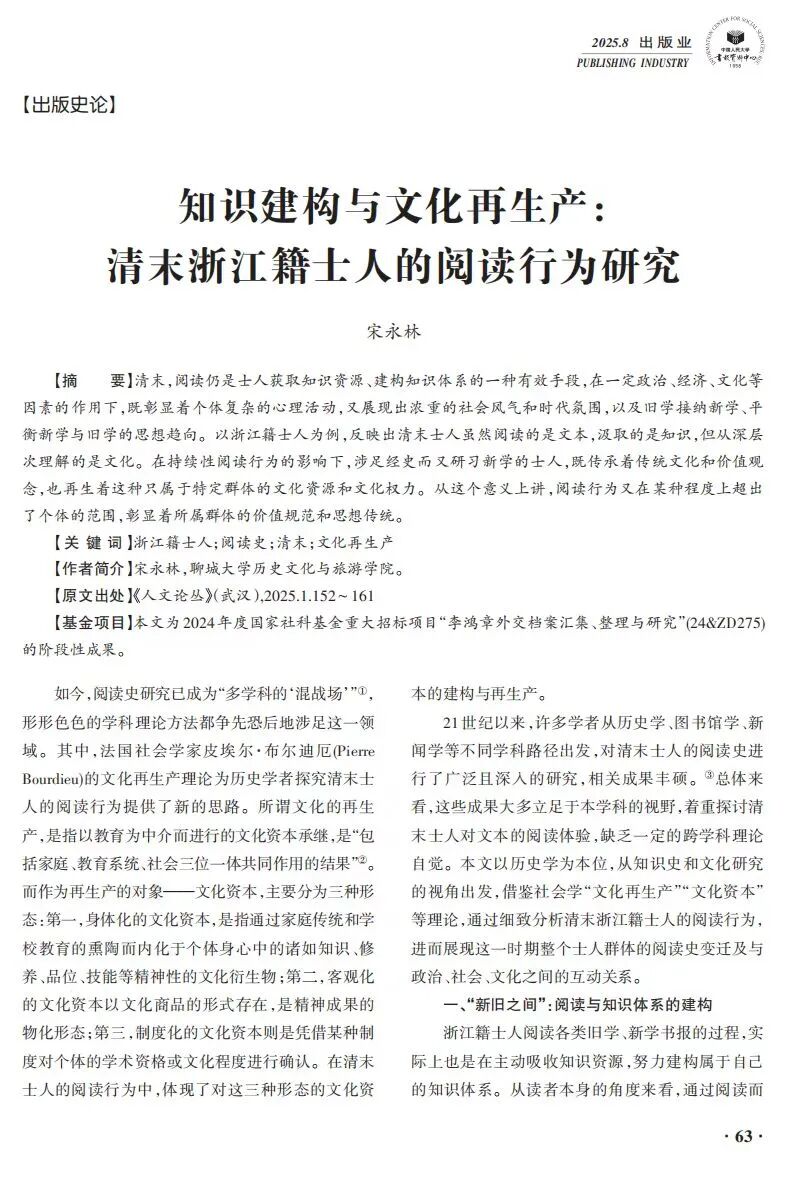 教师宋永林发表于《人文论丛》2025年第一辑的论文《知识建构与文化再生产:清末浙江籍士人的阅读行为研究》被中国人民大学《复印报刊资料·出版业》2025年第8期全文转载。 文章指出,清末,阅读仍是士人获取知识资源、建构知识体系的一种有效手段,在一定政治、经济、文化等因素的作用下,既彰显着个体复杂的心理活动,又展现出浓重的社会风气和时代氛围,以及旧学接纳新学、平衡新学与旧学的思想趋向。以浙江籍士人为例,反映出清末士人虽然阅读的是文本,汲取的是知识,但从深层次理解的是文化。在持续性阅读行为的影响下,涉足经史而又研习新学的士人,既传承着传统文化和价值观念,也再生着这种只属于特定群体的文化资源和文化权力。从这个意义上讲,阅读行为又在某种程度上超出了个体范围,彰显着所属群体的价值规范和思想传统。 人大复印报刊资料是中国人文社科领域极具影响力和核心竞争力的二次文献期刊门类。中国人民大学复印报刊资料转载论文是从国内公开出版的6000多种专业特色报刊中精选出的社科研究成果,是评价人文社会科学期刊学术影响和人文社会科学研究成果水平的重要参考依据。色情小说