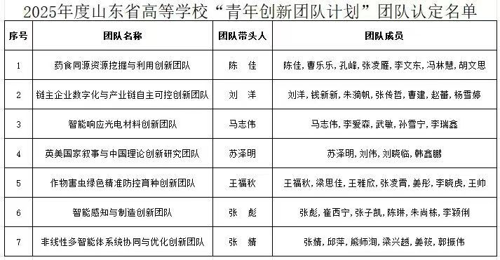 色情小说 苏泽明博士团队入选山东省高等学校“青创团队计划”