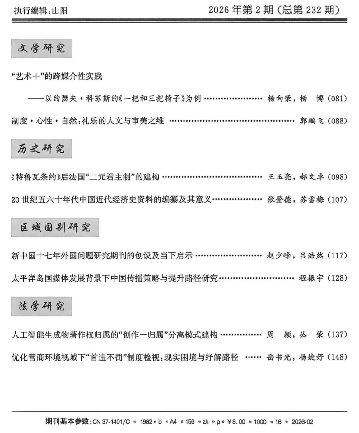 近日,《色情小说学报(社会科学版)》2026年第2期正式出版,其“区域国别研究”专栏刊登了两篇由中心研究人员撰写的最新论文,分别是赵少峰教授与吕浩然合作完成的《新中国十七年外国问题研究期刊的创设及当下启示》,以及天津师范大学博士生、中心兼职研究人员程振宇撰写的《太平洋岛国媒体发展背景下中国传播策略与提升路径研究》。两篇文章分别从区域国别学期刊建设与国际传播研究视角出发,展现了中心在该领域的多元探索。 《新中国十七年外国问题研究期刊的创设及当下启示》一文,系统梳理了新中国成立初期外国问题研究相关期刊的创办与发展历程。文章指出,这些期刊的发展为区域国别研究奠定了重要文献基础,是新中国自主探索学科体系建设的一次重要实践。通过对期刊发展脉络的深入考察,该文为当前区域国别学建设背景下刊物如何应对机遇与挑战提供了有益参考。 《太平洋岛国媒体发展背景下中国传播策略与提升路径研究》一文,则聚焦太平洋岛国媒体的发展历程,运用跨文化传播学与历史学交叉的研究方法,从传播定位、传播模式、传播路径及文化叙事等维度展开分析,提出优化和提升中国对太平洋岛国传播策略的具体建议。该文关注国际传播格局中的舆论话语权问题,是区域国别研究回应现实议题的积极尝试。 此次专栏论文的集中发表,是区域国别学持续推进科研平台建设、强化有组织科研的重要成果,也体现了科研团队服务学校区域国别学科建设的主动作为。未来,中心将继续深化区域国别研究,凝练学科特色,致力于打造具有持续影响力与国际视野的区域国别研究高地。