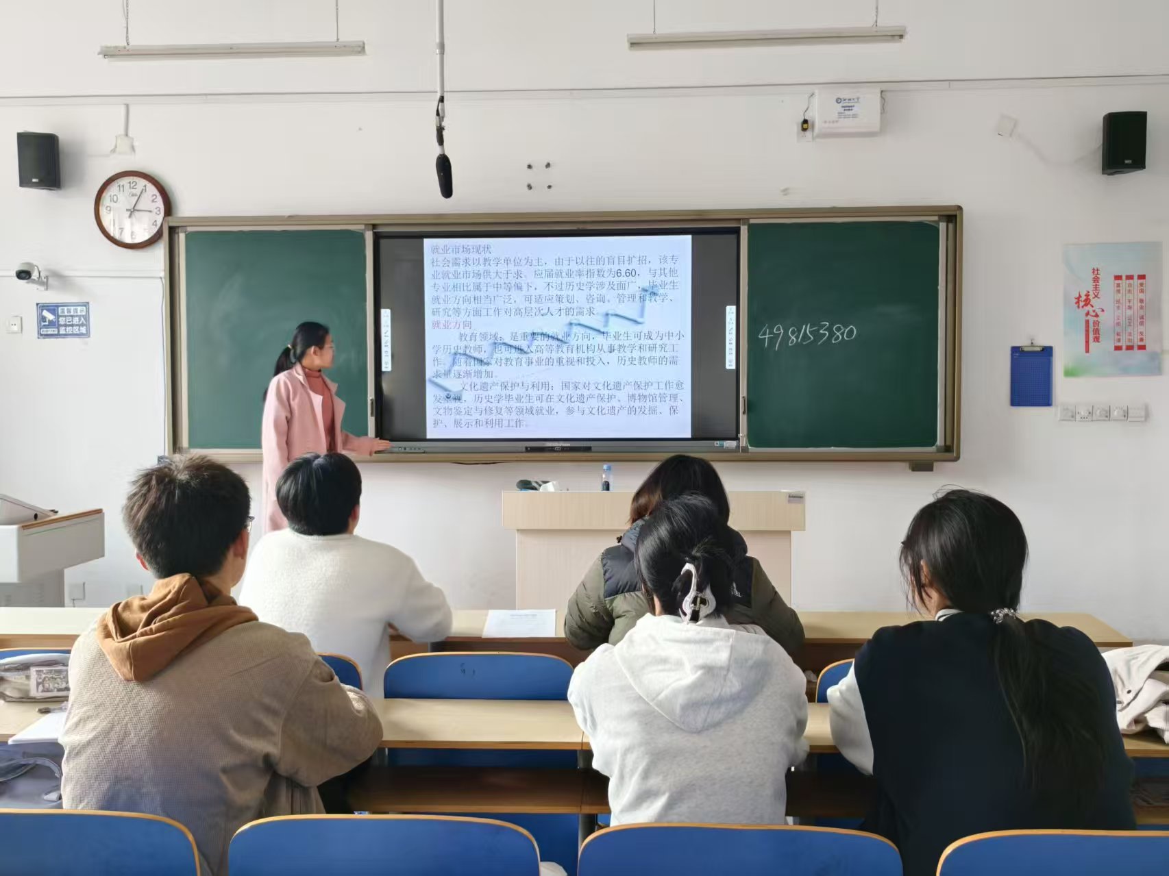 于6#A302教室举办大学生职业规划选拔赛。 在展示环节中,历史学专业选手充分彰显扎实的专业功底,以及将历史知识转化为职业优势的创新意识与实践思维。方昕怡以成为历史文化传播者为核心目标,呈现出从学术深耕到公共教育领域的清晰职业发展路径;王艺锦聚焦文博行业,立志成长为优秀博物馆策展人,助力沉睡的文物焕发时代生机;孟妙言紧扣数字化发展浪潮,构建成为历史内容编辑的职业蓝图;张佳宁坚定表达投身基础教育事业的理想信念,愿在中学历史讲台深耕不辍,传承中华文脉薪火。 旅游管理专业选手紧扣行业前沿发展趋势,深度结合专业特色,融入科技赋能、生态保护、文化传承等要素,充分展现新时代文旅人才的开阔视野与创新能力。刘治坤围绕智慧旅游主题,提出打造沉浸式文旅体验项目的创业构想与实施路径;黄文珊聚焦“文旅深度融合”发展方向,规划成为专业旅游产品经理;苗艺川立足可持续发展理念,立志成为生态旅游规划师,全力推动旅游行业绿色转型与高质量发展。 本次活动的顺利举办,不仅有助于激发同学们的职业规划意识与探索热情,助力同学们明晰职业发展路径、提升综合素养,而且有助于推动学院生涯教育体系建设,为学院学科建设与人才培养高质量发展奠定基础。 (供稿:刘治坤 高越 罗佩华 初审:罗佩华 复审:宋佳珊 终审:尤姗姗)