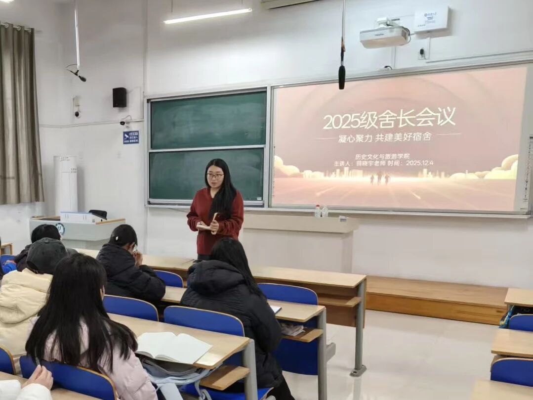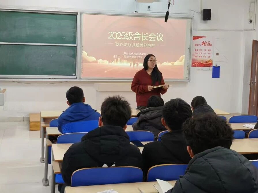 于6#A503教室举办“凝舍长之力,筑宿舍之安”2025级舍长会议。辅导员薛晓宇主持本次会议,2025级全体舍长参加。 薛晓宇向舍长明确宿舍管理的工作重心与具体要求,并强调其在协调舍友关系中的重要作用,要求舍长要以包容理解的态度化解日常相处的矛盾,助力打造团结友爱的宿舍氛围。针对宿舍安全管理,薛晓宇提出舍长应落实每日夜不归宿及请假情况的汇报工作,通过填写共享表格,准确登记信息,保障学院实时掌握学生住宿动态。 薛晓宇叮嘱舍长密切关注舍友的心理健康状态,在日常相处中主动给予关心,如若发现异常情况需及时与学院沟通。在互动探讨环节,舍长结合宿舍的实际情况,提出宿舍作息协调、卫生分配等方面的管理难题,薛晓宇逐一给出解决方案,同时分享宿舍公约制定、定期谈心等实用管理技巧。 舍长纷纷表示,通过本次会议进一步明晰宿舍管理的工作方向,后续会切实履行职责,强化自身责任意识,及时关注并解决宿舍问题,带领舍友共同营造安全和谐的宿舍环境。 本次会议的顺利举办,不仅有利于舍长清晰自身的工作职责与工作方法,提升其履职能力,更有利于学院完善宿舍管理体系,筑牢宿舍安全与心理防护的双重防线,为营造安全、和谐的校园生活环境奠定基础。 (供稿:张东齐 张诺 陆雅馨 初审:陆雅馨 复审:宋佳珊 终审:尤姗姗)