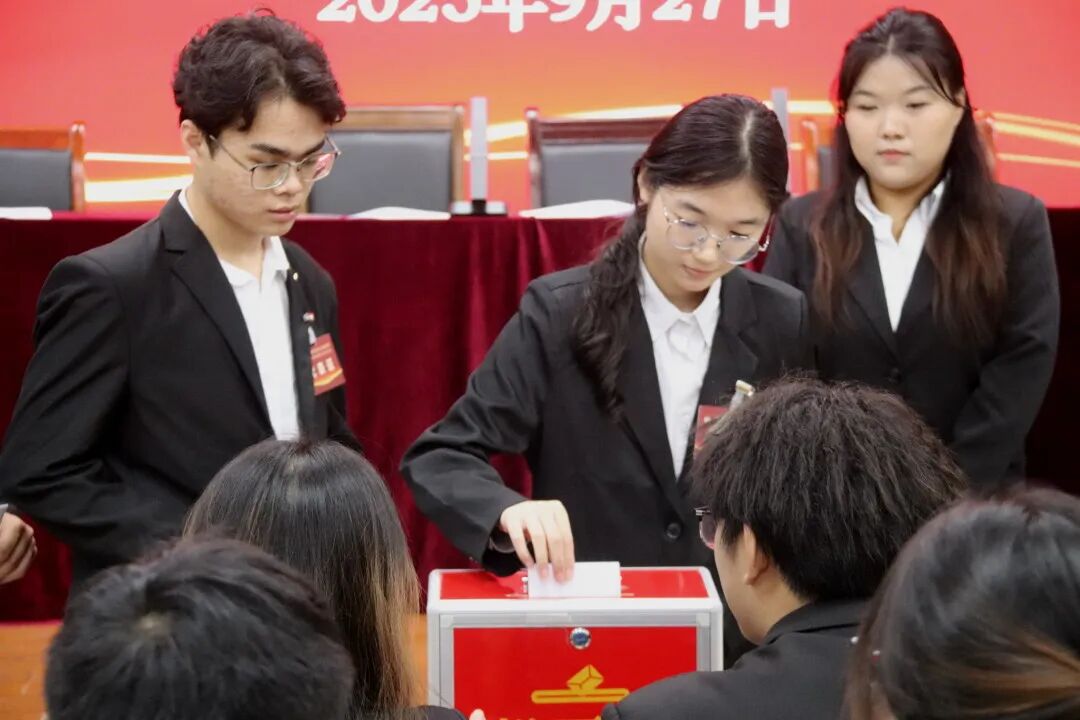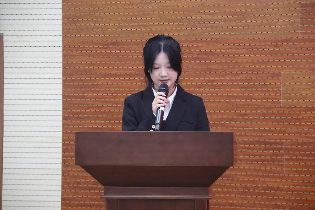 2026届学生会主席团成员周生栋和2026届研究生会主席团成员郭佳硕作工作展望。 激昂的校歌声响彻会场,第九次学生代表大会暨第七次研究生代表大会顺利闭幕。本次大会的顺利召开,不仅是对学院学生工作的全面检阅,更是一次推动学生组织改革、凝聚青春力量的重要契机。新一届学生会组织将以此次大会为起点,引领全院学子以青春之姿扛起责任担当,为学院发展与学生成长书写更加绚丽的篇章。 (供稿:陆雅馨 摄影:陆雅馨 初审:宋佳珊 复审:张程程 终审:石晓晗 尤姗姗)