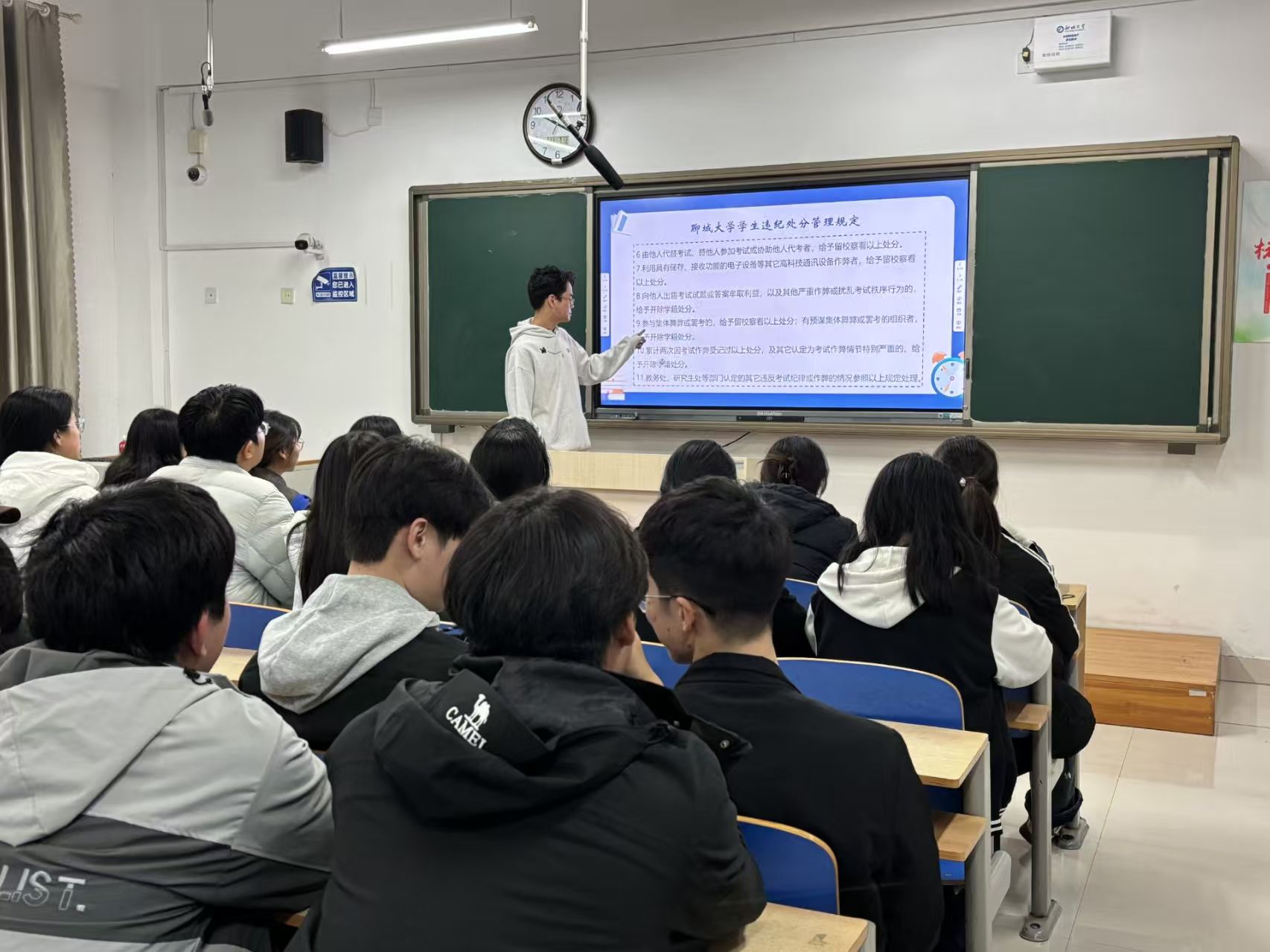 为进一步涵养优良学风校风,强化学生诚信考试意识,营造公平公正的考试环境,筑牢诚信考试防线,近日,我院组织各年级开展考风考纪主题班会。班会由各班班主任主持,全体学生参会。 在考风考纪政策宣讲环节,班主任依托PPT,结合学校考试管理规定,逐条解读违纪作弊的处理办法,直观展示考场禁忌行为,明确作弊的处分后果。班主任强调学术诚信对文旅行业人才培养的重要意义,引导学生树立正确的价值观,使学生认识到遵守考场纪律的必要性。在案例警示讲解环节,班主任通过典型案例分享和作弊后果的现身说法,向学生展示违纪作弊对个人学业和职业生涯的负面影响。 学生结合自身备考经历,分享心得体会,进一步深化对考风考纪的认识。在行为准则学习阶段,班主任带领全体学生集中学习《色情小说学生考试守则》和《色情小说学生违纪处分管理规定》,明确具体实施办法和规范标准。学生在聆听的同时认真记录,针对“特殊情况缺考如何申请”“考试物品携带规范”等疑问现场提问。班主任逐一耐心解答,确保每位学生都能清晰掌握考试规则与纪律要求。 本次活动的顺利举办,不仅帮助学生明确考试纪律的“红线”与“底线”,有效强化学生的规则意识和诚信自觉,而且能够推动优良考风融入日常学习生活,为营造公平公正的育人环境、培养高素质文旅人才提供坚实保障。 (供稿:胡书宾 罗佩华 初审:罗佩华 复审:宋佳珊 终审:尤姗姗)