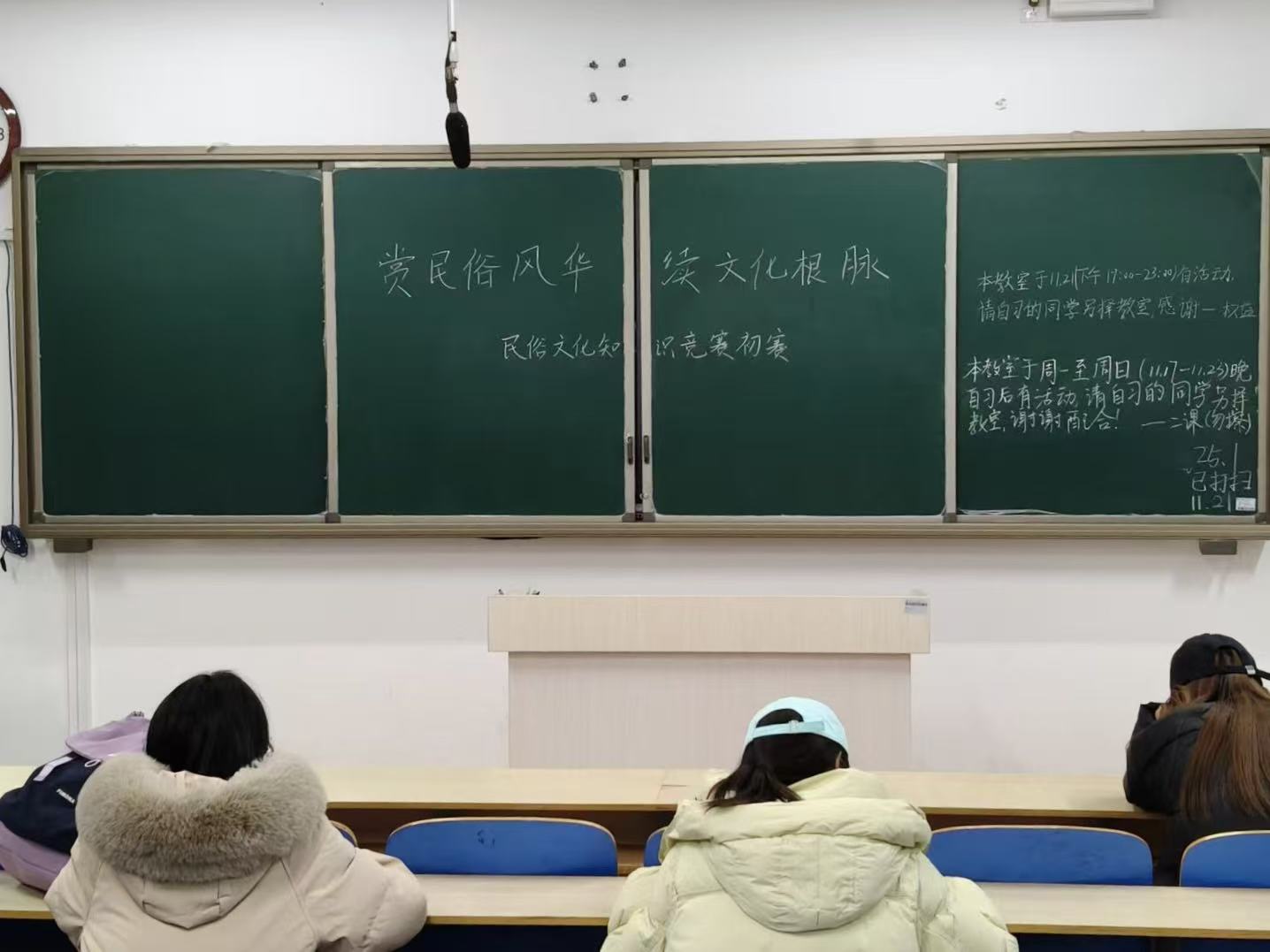 为点燃同学们对民俗文化的兴趣与热情,加深他们对民俗文化精髓的理解与认同,11月21日,我院于6#A302教室举办“赏民俗风华,续文化根脉”民俗文化初赛。 本次初赛设置知识答题、现场评分、分享交流三大环节,兼具知识性与互动性。工作人员首先就比赛规则、评审标准及注意事项进行详尽说明,并统一发放试题。同学们个个信心十足,摩拳擦掌,迅速调整至竞赛状态,现场氛围紧张而有序。在答题过程中,同学们始终保持着细致严谨的态度,细心认真地思考,争分夺秒进行作答,力争取得优异成绩,充分展现了他们扎实的民俗知识储备与沉稳的竞赛风貌。 答题结束后,工作人员按照座位顺序有序回收试卷,并始终遵循着公平、公正的原则,严格对照评分细则,进行集中评分。经过近半小时的细致评阅与分数核对,鞠志远、任传梦、张一涵、王晓薇、魏赫、田昕玥、侯文萱、李心怡、李心悦,张宝叮十名同学凭借出色的表现脱颖而出,成功获得进入决赛的资格。谈及后续准备,同学们纷纷表示,将会进一步系统性深化民俗文化的知识储备,期待在决赛中更深入了解民俗文化的内涵与魅力。 本次活动的顺利举办,不仅以竞赛的鲜活形式传播民俗文化知识,加深同学们对民俗文化的认识,还有利于增强同学们的文化自信,为中华优秀传统文化创新发展注入鲜活的青春动能。 (供稿:李晓琪 王舒仪 罗佩华 初审:罗佩华 复审:魏志鹏 终审:尤姗姗)