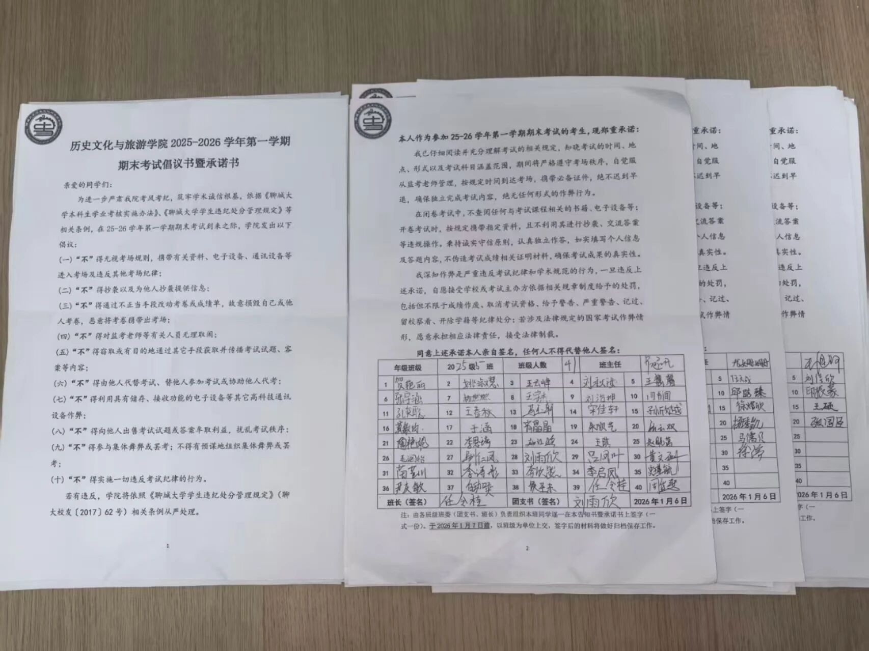 2025—2026学年第一学期期末考试倡议书暨承诺书》的核心内容进行逐条解读,重点强调考场规则、违纪情形及处理办法,提醒学生自觉遵守考试纪律,杜绝侥幸心理,帮助他们认识到诚信应考的重要性。各班学生依次领取承诺书,郑重签下自己的姓名。签名结束后,在场学生纷纷表示,通过此次活动进一步加深对诚信考试的理解,今后一定会更加严格遵守学校考试管理规定,自觉服从监考教师安排,以真实成绩检验学习成果。 本次活动的顺利举办,有利于提升学生的规则意识和责任意识,塑造其诚信品格,为培育良好考风学风奠定坚实基础。下一步,学院将继续探索诚信教育的新路径与新载体,持续加强学风建设,努力培养坚守诚信底线、具备专业素养与人文情怀的新时代青年。 (供稿:张一涵 张旭 初审:郭艺泽 复审:宋佳珊 终审:尤姗姗)
