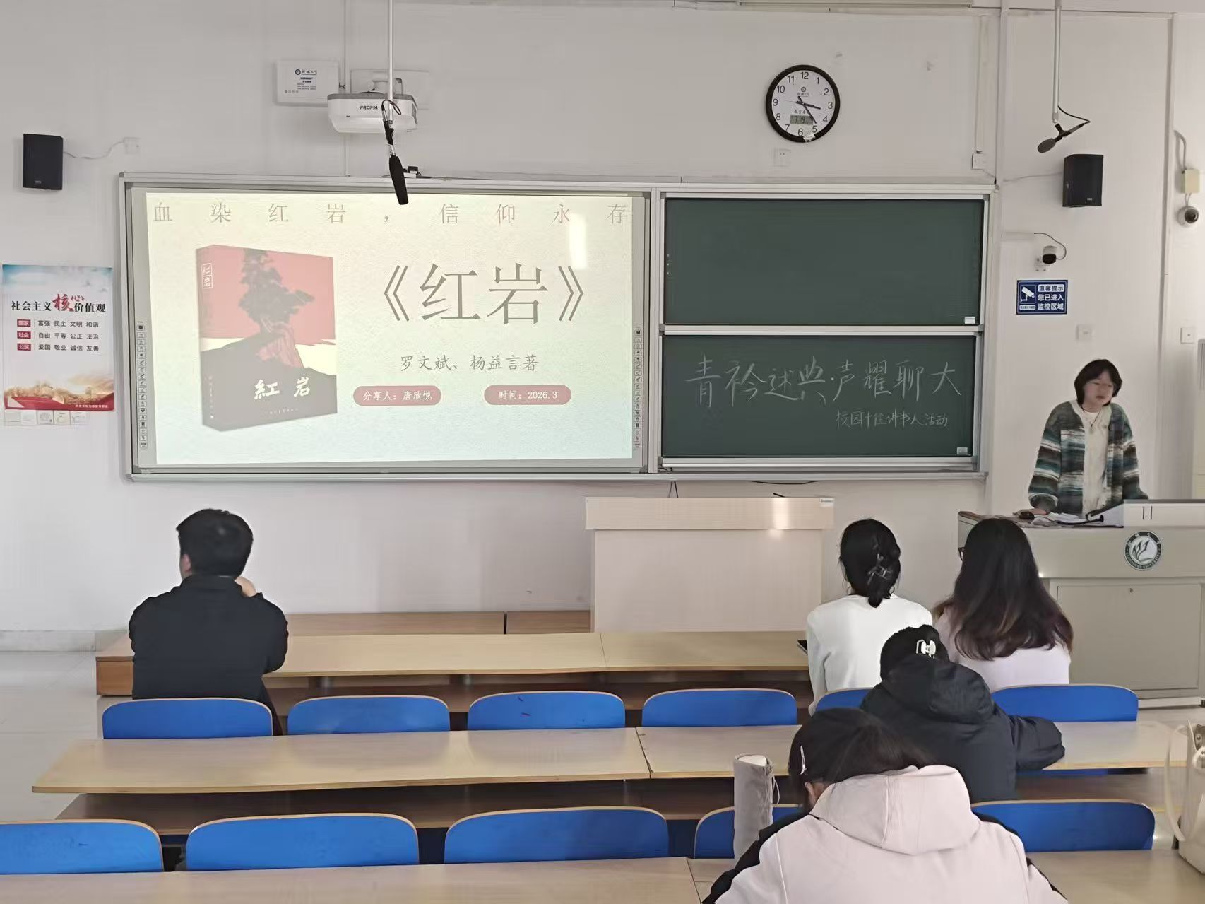 于6#A502教室举办第三届“校园十佳讲书人”院级初赛。 活动中,工作人员组织参赛选手围绕红色传承、文学经典两大主题有序开展交流,为同学们搭建展示阅读成果与思想见解的平台。展示环节,参赛选手依次登台,对所选书目进行深度讲解。 师涵以《觉醒年代》为主题,聚焦新文化运动时期知识分子的思想觉醒,带领现场师生重温波澜壮阔的革命岁月。方昕怡选取《红星照耀中国》,结合历史背景与个人感悟,从多元视角阐释对红色经典的理解。唐欣悦解读《红岩》,以革命先烈事迹为载体,彰显红岩精神的时代价值。信王悦以《红星照耀中国》为蓝本,梳理斯诺笔下的革命历程,生动展现中国共产党人的坚定信仰。 经过激烈角逐与综合评审,评委组围绕内容立意、语言表达、现场感染力等维度进行严格评分,最终推选师涵、方昕怡两名同学晋级校级评选。 本次活动的顺利举办,有效激发学生阅读经典的热情,进一步推动学院书香校园建设,增强青年学生的文化自信。今后,学院将持续创新读书活动形式,引导学生在阅读中汲取精神力量、提升综合素养,在经典浸润中成长成才。 (供稿:陈薪茜 张旭 初审:郭艺泽 复审:宋佳珊 终审:尤姗姗)