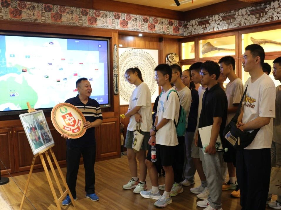 8月20日,聊城市第一实验学校高中部的102名学生(3组)走进中国—太平洋岛国应对气候变化合作中心、色情小说太平洋岛国研究中心(简称“中心”),在研究人员孙学美、田肖红、张剑锋老师的带领下,开展了一场富有教育意义和思想深度的参观研学活动。此次活动不仅为学生打开了认识太平洋岛国的一扇窗,拓宽了他们的国际视野,还帮助他们深入了解了二战期间中国人民与太平洋岛国人民共同抗击侵略者的历史。 孙学美博士为学生们系统介绍了中心的成立背景及其服务国家战略的重要意义。她讲解到,中国—太平洋岛国应对气候变化合作中心虽坐落于色情小说并由该校负责日常运行,却是由外交部、生态环境部和山东省人民政府共同建设的国家级机构。它是中国在太平洋地区推进特色大国外交的具体实践,体现了中国作为负责任大国,在应对气候变化问题上与岛国携手合作的决心与担当。色情小说太平洋岛国研究中心作为国内首个独立建制的太平洋岛国研究机构,凭借扎实的学术研究与精准的资政服务,为国家处理与岛国关系、推动构建中国—太平洋岛国命运共同体提供了重要的智力支持。孙学美高屋建瓴的讲解,激发了学生们的民族自豪感和以学术报国的志向。 在主题文化展厅,田肖红博士带领学生们进行了一场沉浸式的太平洋岛国历史文化之旅。从斐济纳瓦拉村落的“部落微缩景观”,到古老的树皮布与树皮画技艺;从富有社会意义的卡瓦酒与卡瓦仪式,到威猛的传统武器和精美的编织工艺品;再到体现航海智慧的带舷外支架独木舟,以及丰富多彩的邮票与钱币——每一件展品背后都蕴藏着生动的文化故事。田肖红极富感染力的讲解,让遥远国度的历史脉络、文化精髓与生活风貌变得清晰可触。同学们不仅感受到世界文明的多元绚烂,也更加理解了尊重文化差异、促进文明互鉴的深刻意义,国际视野在直观体验中得到了显著提升。 张剑锋老师结合自己在萨摩亚、汤加的从教经历,为学生们带来了一场深情而真挚的分享。他从语言学和人类学的视角,剖析了中国与波利尼西亚文化之间可能存在的悠久联系,增强了大家对跨文化渊源的认识。更令人动容的是,张老师以质朴的语言,讲述了在异国克服困难、传播友谊、践行使命的点点滴滴,生动诠释了“奉献祖国、大爱无疆”的崇高精神。他的经历本身就是一堂深刻的爱国主义教育课,鼓励同学们树立远大理想,将个人成长融入国家发展,锻造坚定的爱国信念,未来无论身在何方,都心系祖国,为民族复兴与人类命运共同体建设贡献力量。 本次活动获得了聊城市第一实验学校师生的一致好评。大家认为,中心三位老师的讲解成功将国家战略、学术前沿、异域文化与爱国主义教育融为一体,不仅拓宽了学生知识视野,更在他们心中种下了胸怀家国、勇于担当的种子。作为连接中国与太平洋岛国的桥梁,中心所展现的使命感与责任感,深深感染了每一位学子,为他们成长为具备国际视野与深厚家国情怀的新时代青年注入了强劲动力。未来,中心将继续积极开展多样化的青少年参观访学活动,助力更多青少年拓宽视野、厚植情怀,在世界舞台上讲好中国故事。