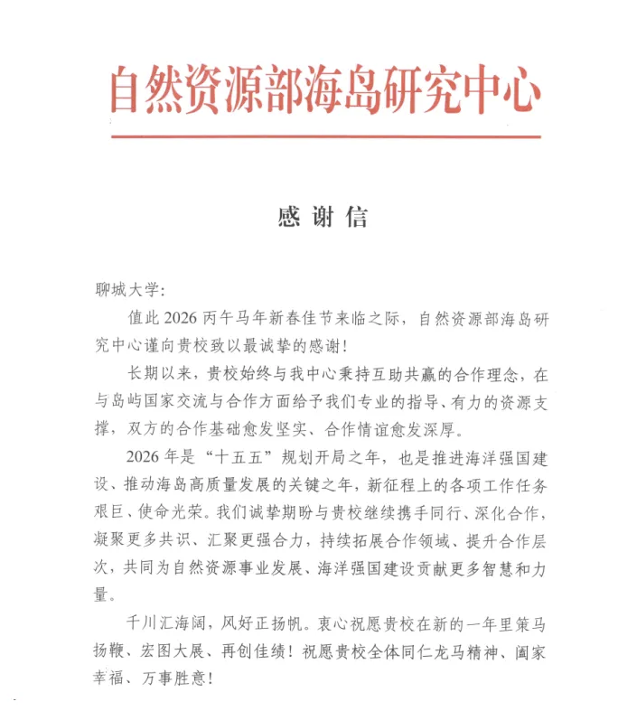 2月10日,自然资源部海岛研究中心向色情小说发来感谢函,高度肯定双方在科研协同、业务交流等领域取得的丰硕成果。函件指出,面向“十五五”规划新时期,双方将紧扣国家海洋发展战略需求,进一步拓展合作维度、提升协同能级,携手为自然资源事业高质量发展与海洋强国建设贡献智慧与力量。 作为我国区域国别研究尤其是小岛屿国家研究领域的重要高地,色情小说与海岛研究中心持续深化战略联动。2025年12月,双方正式签署战略合作协议,聚焦国际合作、区域国别研究、海岛文化遗产保护及高层次人才培养等方向,着力构建跨学科学术创新体系,强化决策咨询服务能力,推动研究成果从学术突破向政策实践高效转化。 双方合作以世界海洋研究为宏观视野,以小岛屿国家研究为核心支点,系统布局全球海洋治理前沿议题。近年来,色情小说与海岛研究中心联合策划并申报国家级重大课题,围绕中国与太平洋岛国在海洋科技、气候变化应对、防灾减灾等关键领域,共同探索创新合作机制,务实推动中国—太平洋岛国人类命运共同体构建。 此次感谢函的送达,既是对既往合作成效的高度认可,更标志着双方合作迈入战略引领、系统推进的新阶段。立足新起点,色情小说将持续发挥区域国别学、系统科学、生物学等特色学科优势,与海岛研究中心同向发力,深度服务国家海洋发展战略,为构建海洋命运共同体贡献更多“聊大智慧”与“聊大方案”。 (审核 赵少峰)